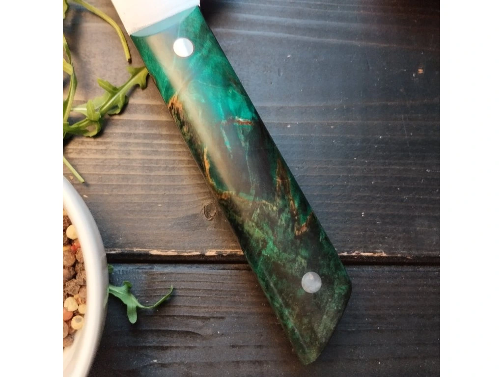 ✔ Rukojeť ze stabilizovaného dřeva – pevná, odolná a s jedinečným vzhledem.