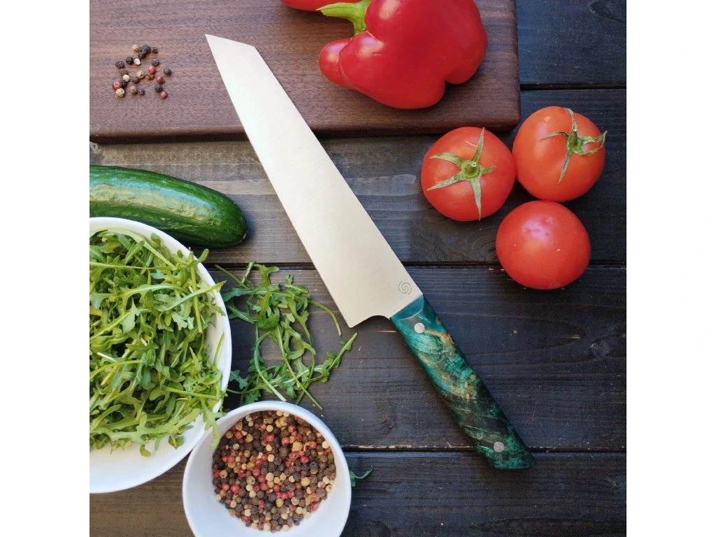 Tento nůž inspirovaný tradičním japonským nožem Kiritsuke je dokonalým pomocníkem pro krájení, plátkování i čištění masa, ovoce a zeleniny. Díky vyšší špičce je ideální i pro kolébkové krájení, což oceníte při práci s bylinkami a zeleninou.