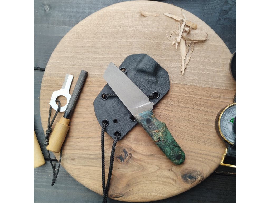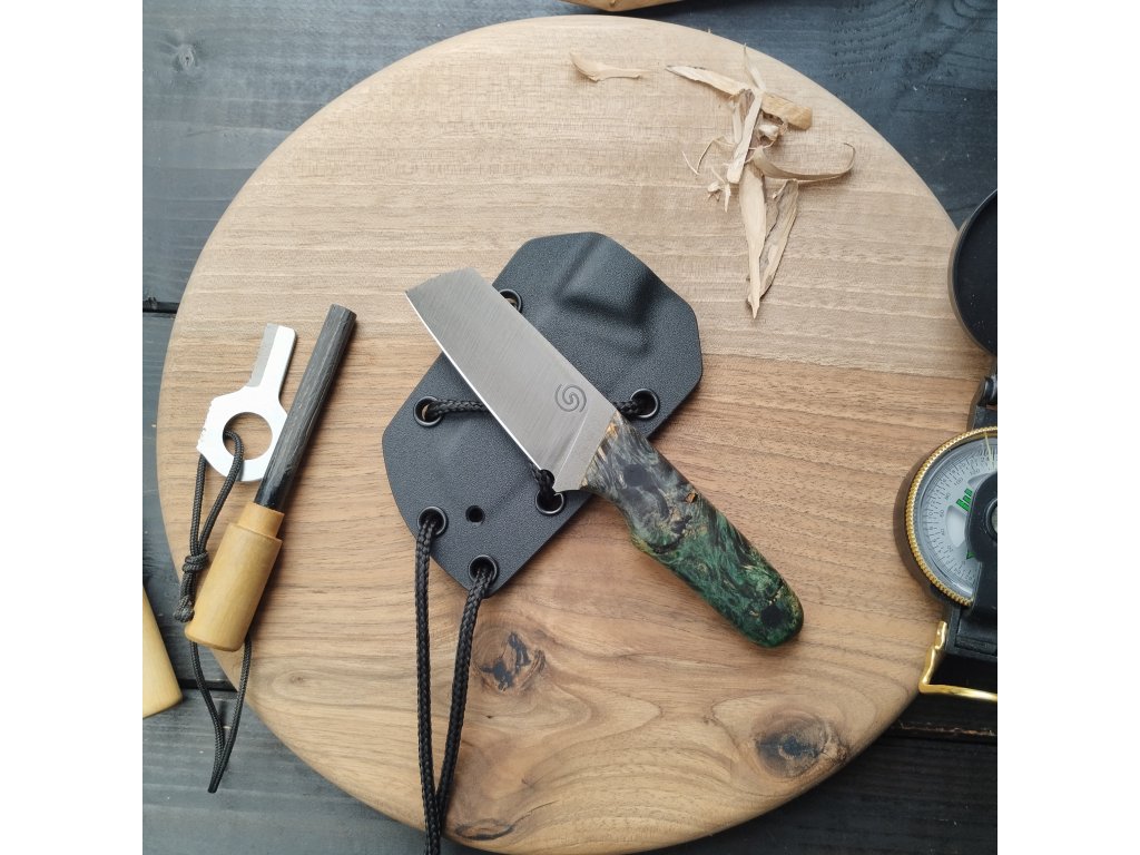 Tento volnočasový nůž je ideální parťák na cesty a díky kompaktním rozměrům ho můžete brát opravdu kamkoliv. Lze ho zavěsit na krk nebo dát do kapsy a ani o něm nebudete vědět. Nůž dodávám včetně kydexového pouzdra, které zabezpečuje nůž proti samovolnému vypadnutí.