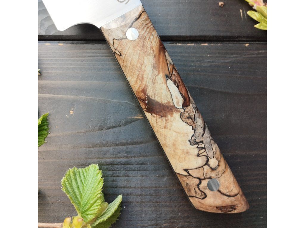 ✔ Rukojeť ze stabilizovaného dřeva – pevná, odolná a s jedinečným vzhledem