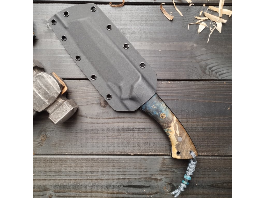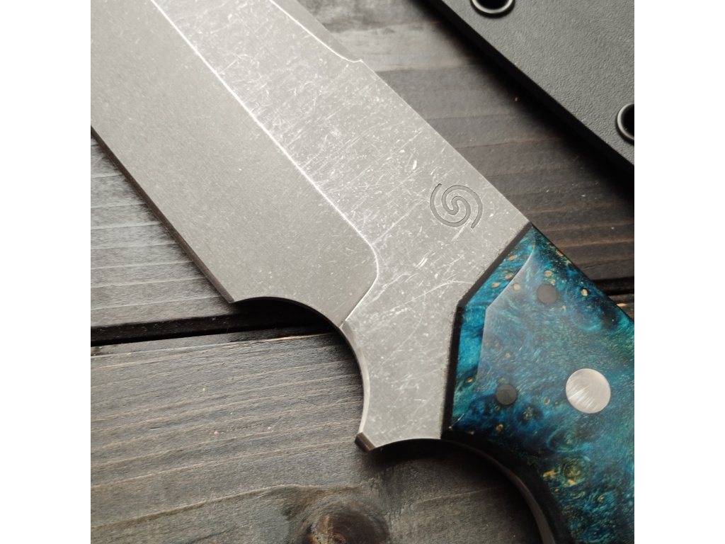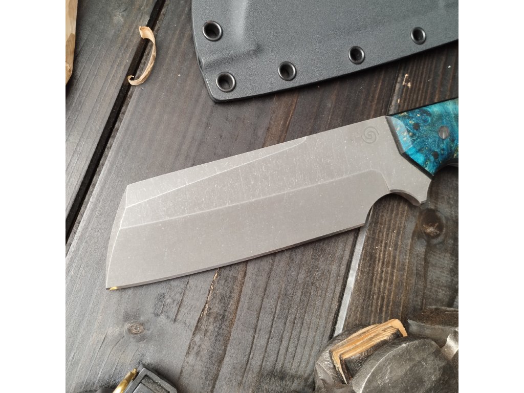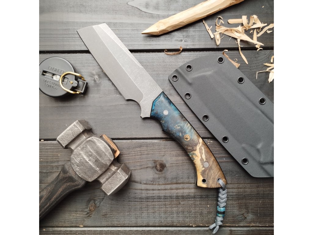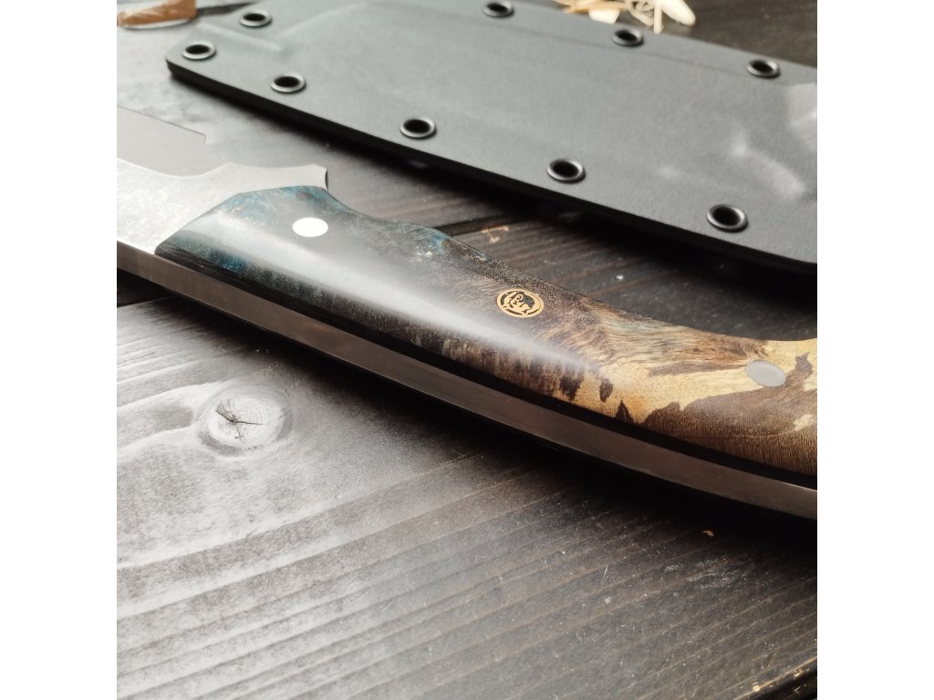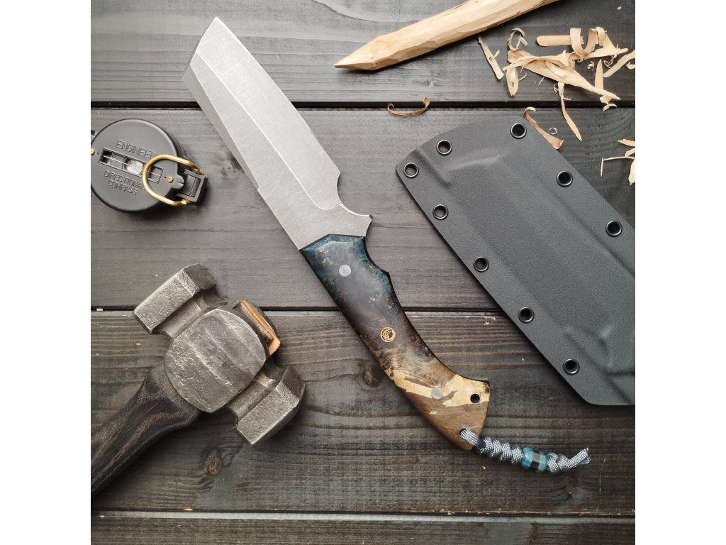 Ručně vyráběný z prvotřídní nerezové oceli Böhler N690, která vyniká vysokou tvrdostí a skvělou odolností vůči korozi. Ergonomická rukojeť z kvalitního stabilizovaného dřeva je ošetřena tungovým olejem a karnaubským voskem, což zajišťuje dlouhou životnost a příjemný úchop.